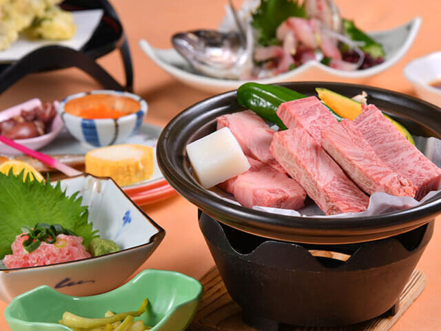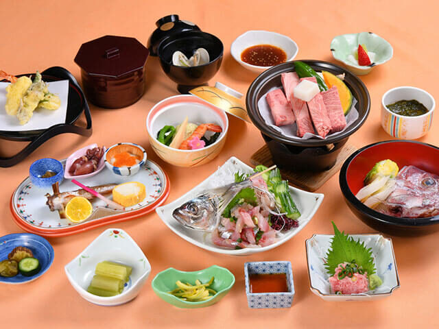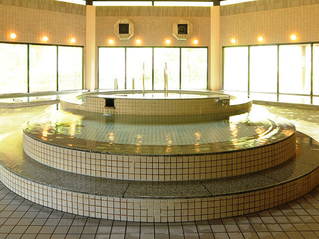 大自然の中にたつリゾート。保湿効果抜群の美肌温泉は豊富な源泉を利用した大浴場でジャグジー、露天風呂など7種類のお風呂で楽しめます。開放感いっぱいの天然温泉。秋の宮山荘の大浴場は男女とも約50坪の広さがあり、その中でジャグジー・サウナ・露天風呂・打たせ湯・寝湯・温湯・大浴槽の7種類が楽しめる。お箸で食べられる旬素材の創作フレンチ&和の折衷料理も大好評。
