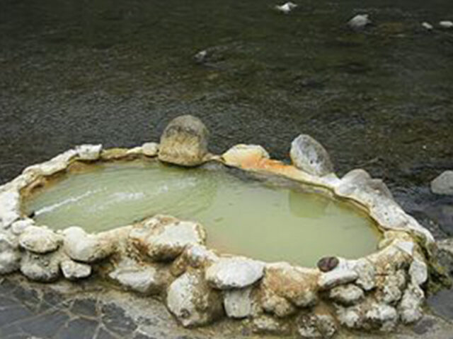 温泉街の中心を流れる芹川の川原にある混浴露天風呂「ガニ湯」や、
