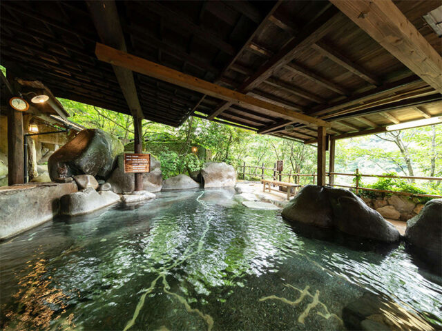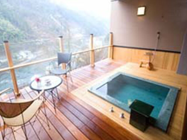 清流玖珠川沿いの渓谷を望む一軒宿。渓谷を望む露天風呂が自慢