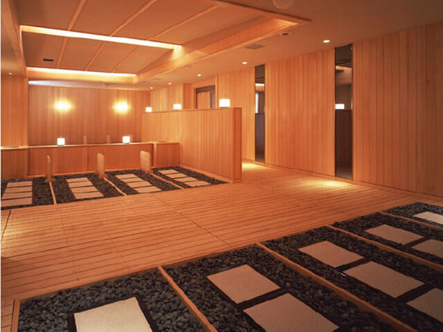 最上階には日常の喧騒を離れ沈む夕日を眺望する展望温泉空間が拡がる。玉川産北投石岩盤浴や露天風呂付客室等多様なニーズに応え高い利便性と癒しをテーマにした快適なホテル