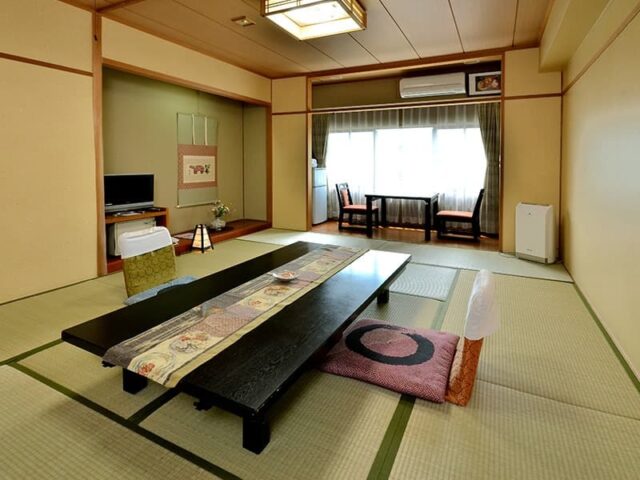 エメラルドグリーンの源泉を全ての湯船で。月岡温泉とコンパニオンを堪能できる宿。