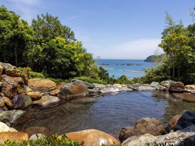 多くの宿が海沿いの高台や波打ち際にあり、朝は水平線から昇る朝日、夜は満天の星空を眺めながら入浴できます。