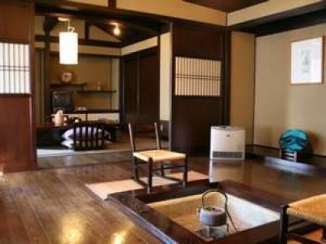 信州松本らしい土壁と梁を設えた民芸調の宿
