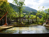 箱根湯本駅から徒歩8分。各部屋ごとの温泉貸切露天も好評