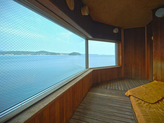 かもめが近くを飛び交う開放感あふれる浴場で、