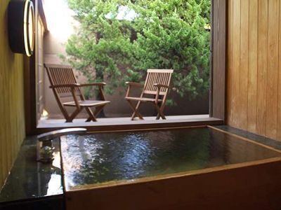 100%源泉かけ流しの大浴場を完備!!ヒノキの貸切風呂も大人気です。