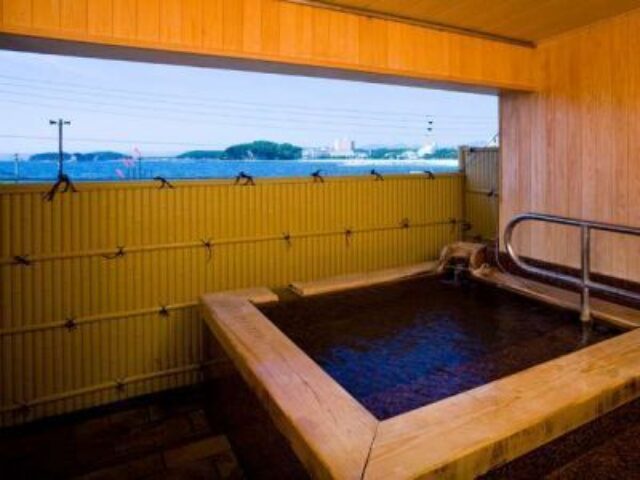 日本三古泉のひとつの温泉はかけ流しで海を一望しながら入浴でき、