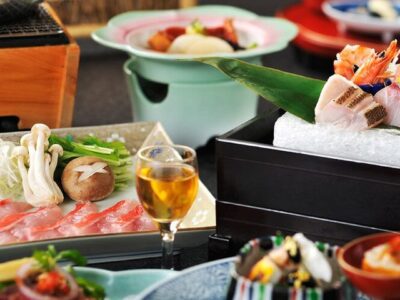 名物の金目鯛の煮付をはじめ絶品料理の数々を豪華な会席料理でお召し上がり下さい。美人コンパニオンがお客様の旅の思い出を華やかに彩ります!